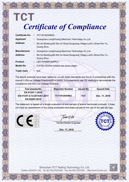 廣州龍創電子科技有限公司 成立于2009年專業從事LED AC-DC開關電源及驅動電源的開發、生產及銷售。公司座落于廣州番禺,交通便捷。廠區面積4000平方米;年產能100多萬臺。產品已獲得CCC 、CE&RoHS等證書,遍布國內外市場,遠銷全球,如歐美、南美、中東、東南亞及港臺等60個國家和地區,在行業內享有一定的知名度。